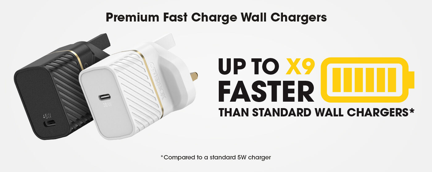 Tutti i nostri prodotti Fast Charge sono progettati con la tecnologia USB Power Delivery (USB PD) e sono facilmente identificabili, così potrai essere certo che il tuo dispositivo si ricaricherà in un batter d’occhio! Gli accessori OtterBox per l’alimentazione a ricarica rapida sono riconoscibili in negozio dal logo Fast Charge visibile sulla confezione.