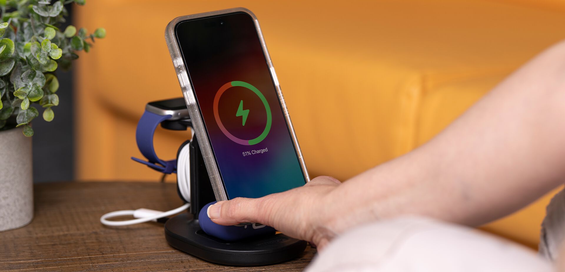 Sì, puoi sempre appoggiare il telefono su un pad di ricarica mentre lavori, ma poi devi sempre allungare la testa quando arriva una notifica. MagSafe è abbastanza potente da sfidare la gravità quando colleghi il telefono a una Stazione di Ricarica 3 in 1, abbastanza piccolo da poter essere posizionato ovunque e abbastanza stabile da reggere anche un iPhone 13 Pro Max; inoltre, il dispositivo resta nell’angolazione giusta per permetterti di guardare lo schermo durante la ricarica. C’è anche un pad di ricarica per Apple Watch e AirPods Apple in grado di fornire energia in tre modi diversi con un solo cavo.